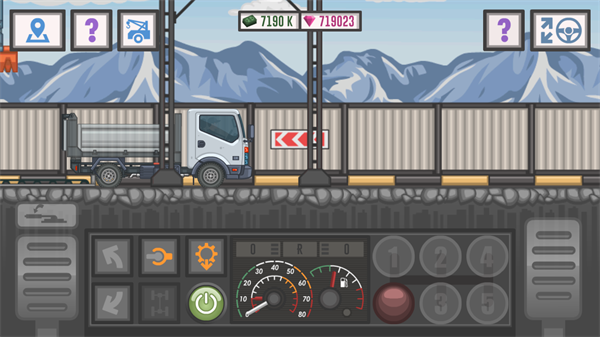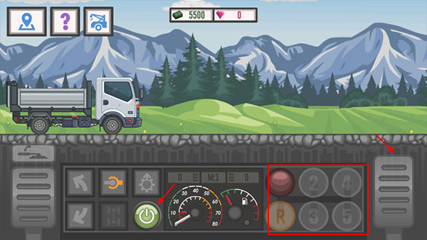 2、点击启动按钮,挂上对应的档位,再点击加速踏板。在这个过程中,你必须熟练掌握车速以及在上坡时进行档位调节,如此才能成功完成运货。