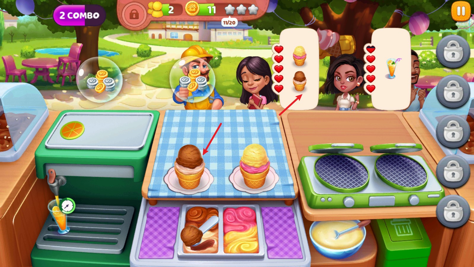 5、完成制作后,点击冰淇淋就能把它送给相应的客人。