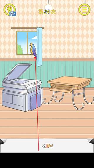 2、把鱼朝着窗帘背后的鹦鹉使用,从而得到铜锣烧的纸。