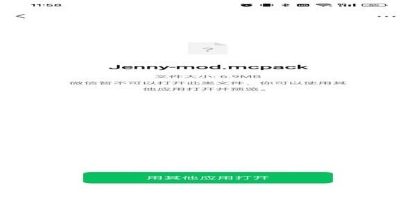 2. 在手机上进行解压缩操作,解压后会得到两个文件,分别为Jenny-mod.mcpack和minecraftpe.apk 。