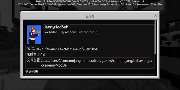 8. 点击“设置”,找到“资源包或行为包”选项,在其中选中“JennyModBeh”,然后点击“激活”。