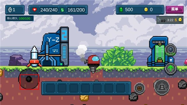 2. 把移动杆向下拉动,接着点击右侧的钻头,便能进入地底世界。