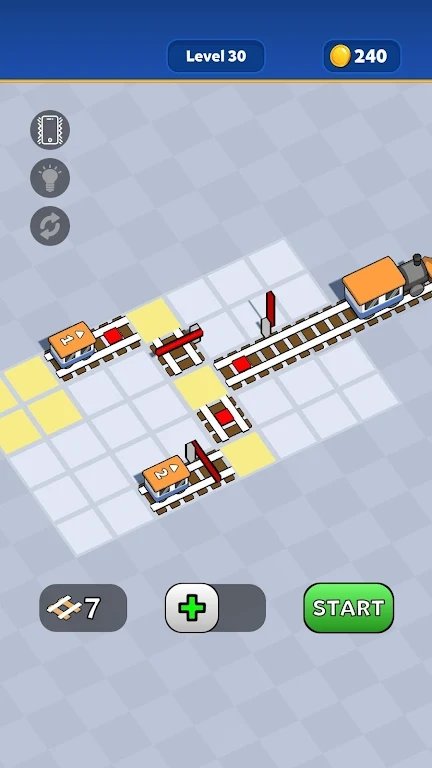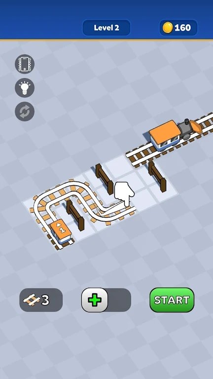 玩家需运用摆放、旋转等方式拼接铁轨,以使车厢能够与火车头相连。
