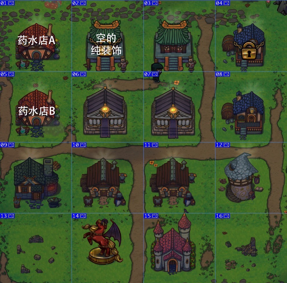 1. 根据我的观察,英雄大概率会在图里05~12之间停止游走,因此很多很重要的东西我都放在了05~12,尽量缩短他们游走结束后去下一个店的时间