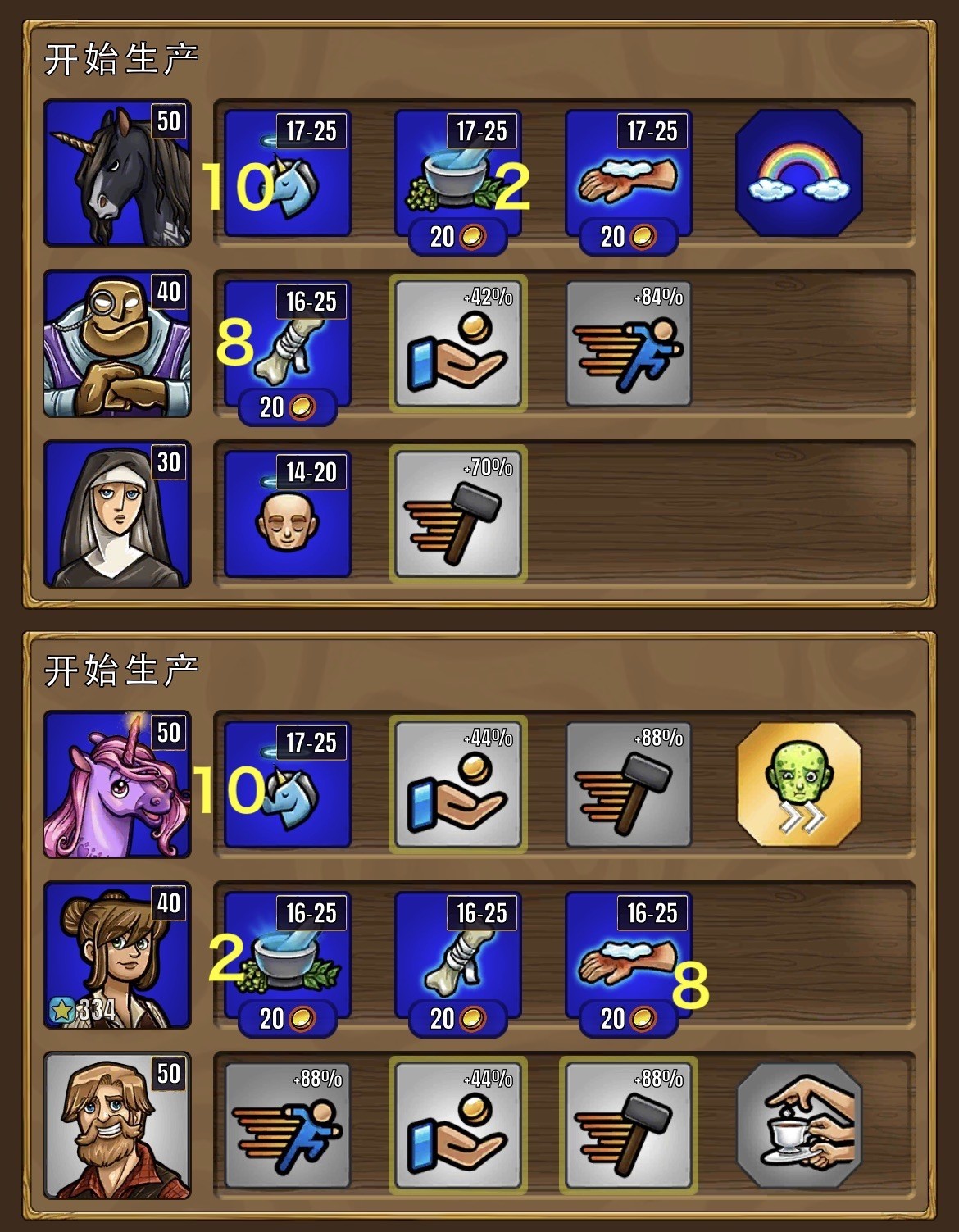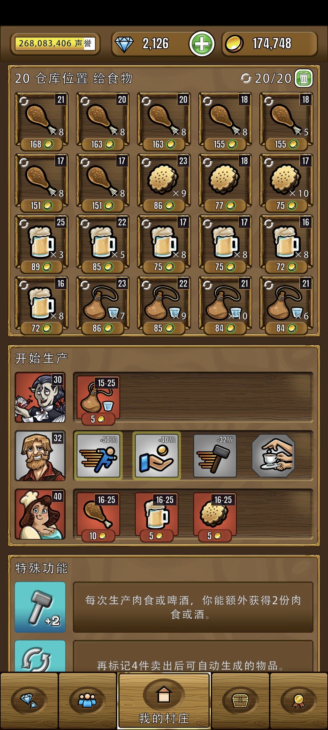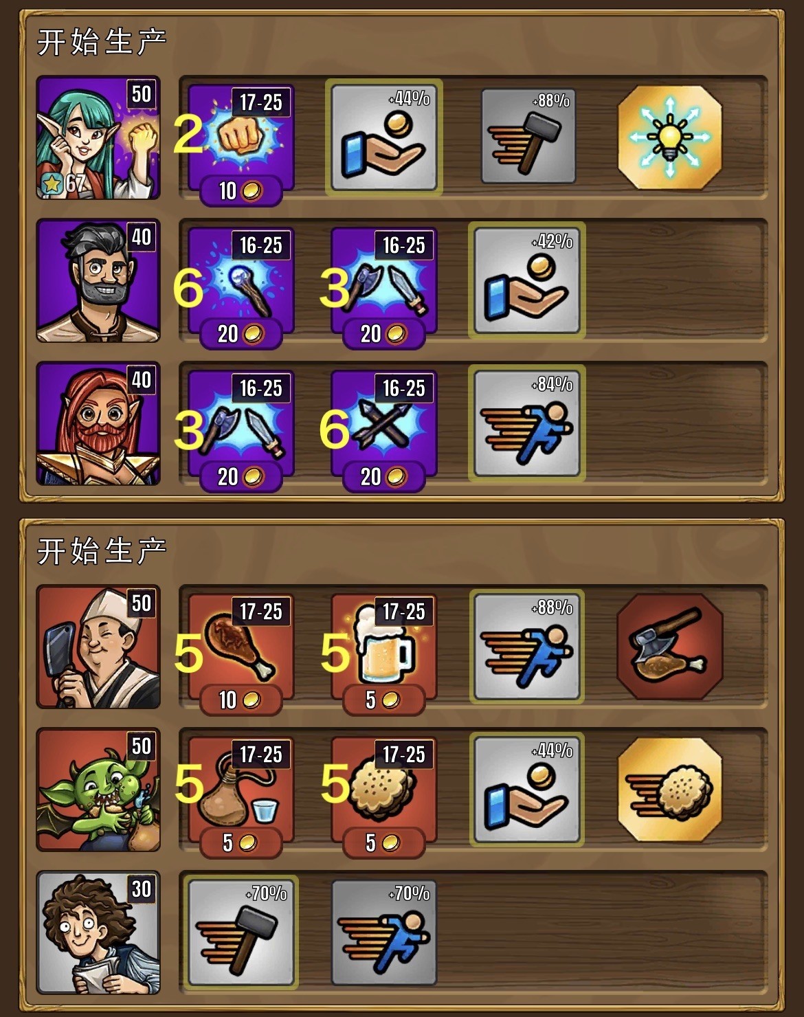 酒馆之前说了。后期这个增产的白色店员很关键,有他一个酒馆基本够用。如果做酒馆任务,必须开副酒馆(副酒馆就随便上俩人,东西卖全就行)
