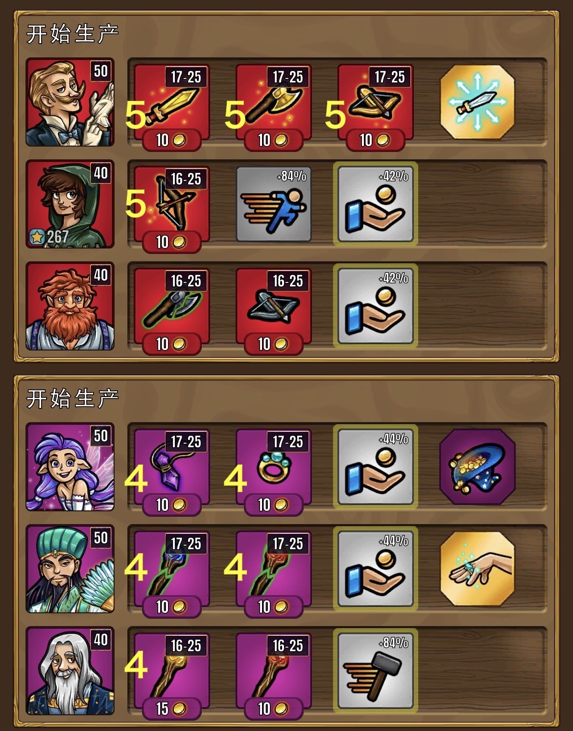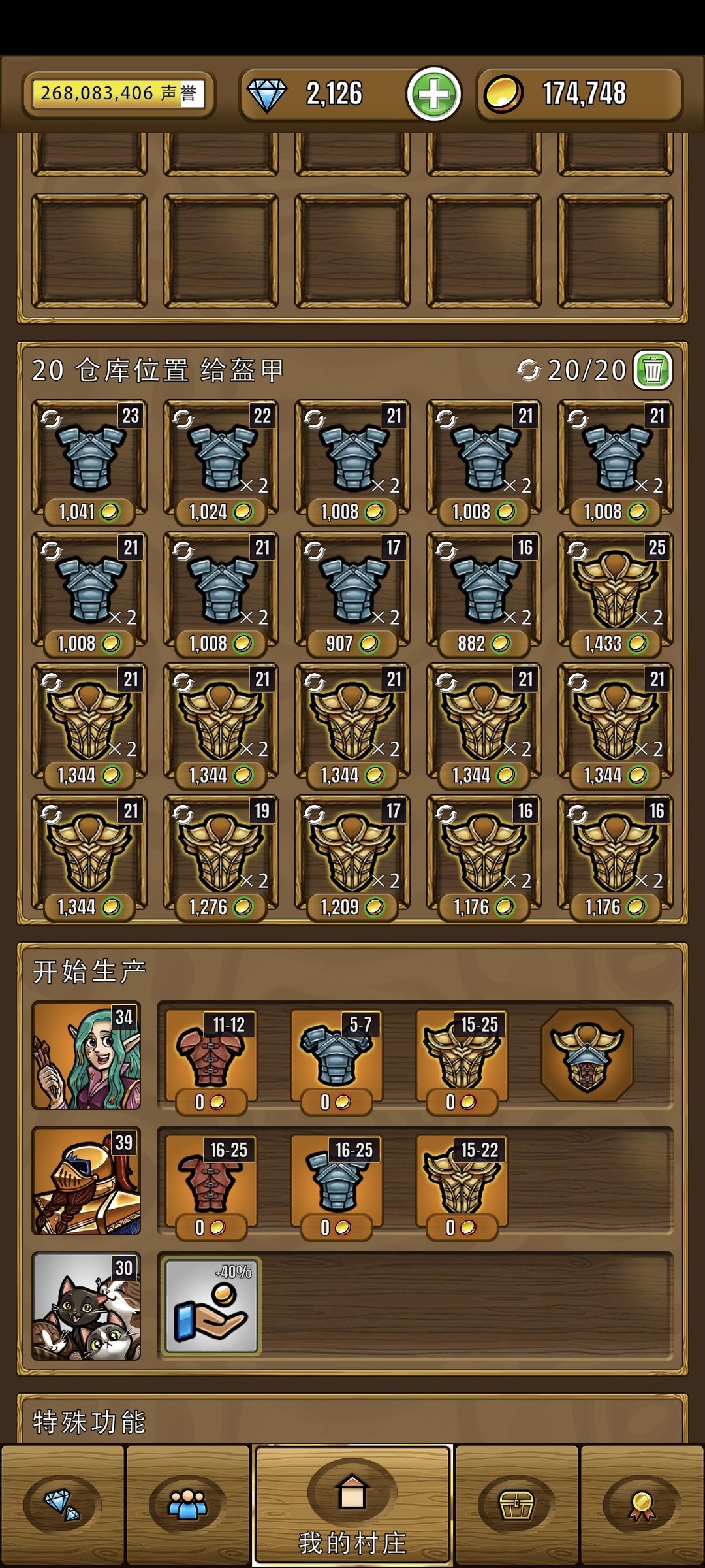 不会有英雄同时要俩种甲,因此可以分俩个店卖,增加离店速度(价格也能上去)。前期如果产出 < 出售,加上白色增加产出速度的店员。