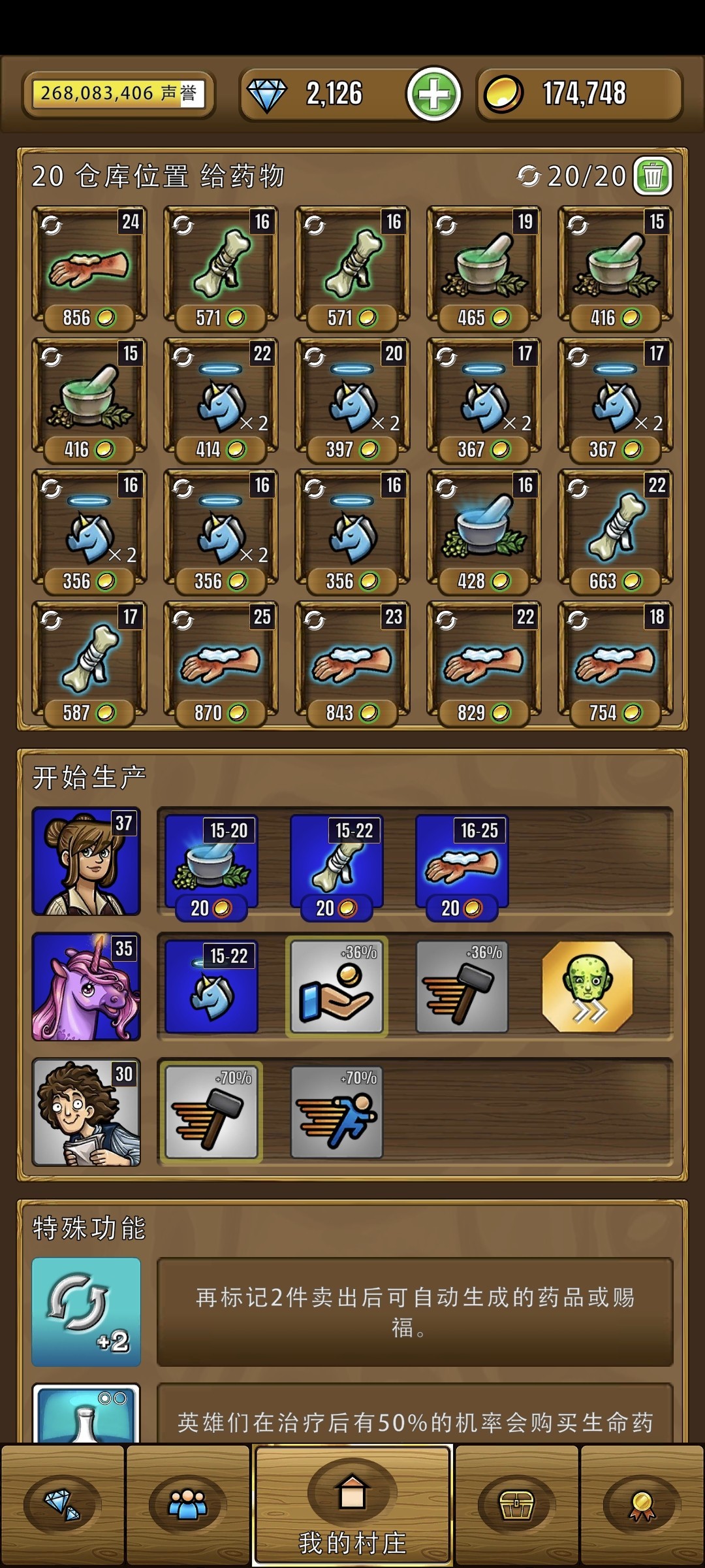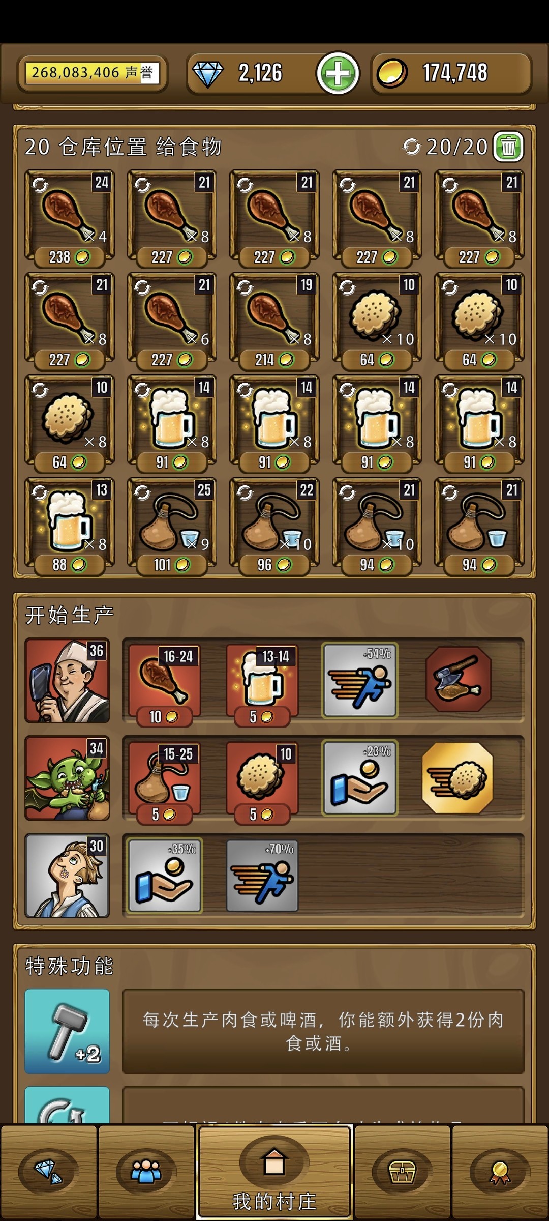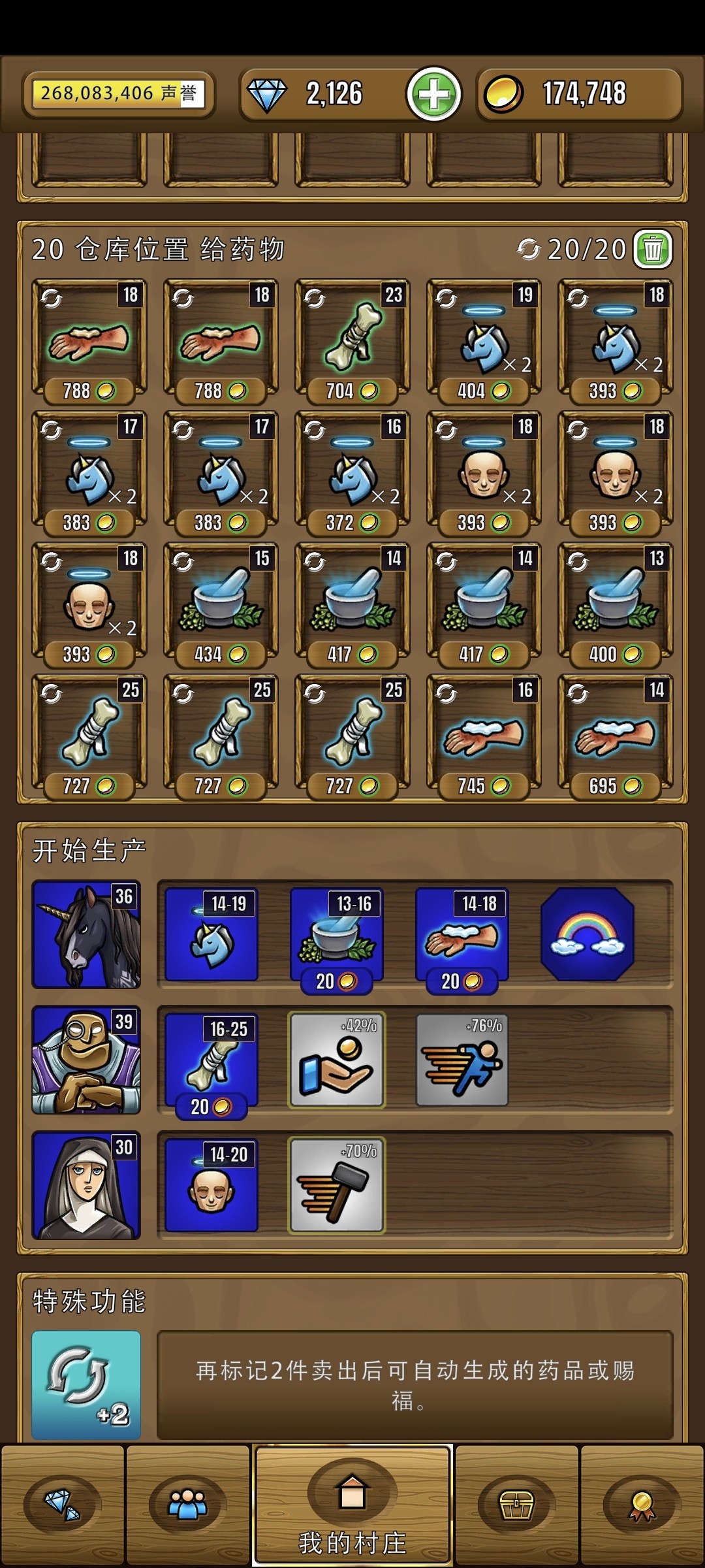 3. 战利品没什么好说的,一个工厂圣诞老人,另一个特里(金箱)。下线的时候,可以把加生产速度的员工放到圣诞老人这里,全力产出独角兽食物。