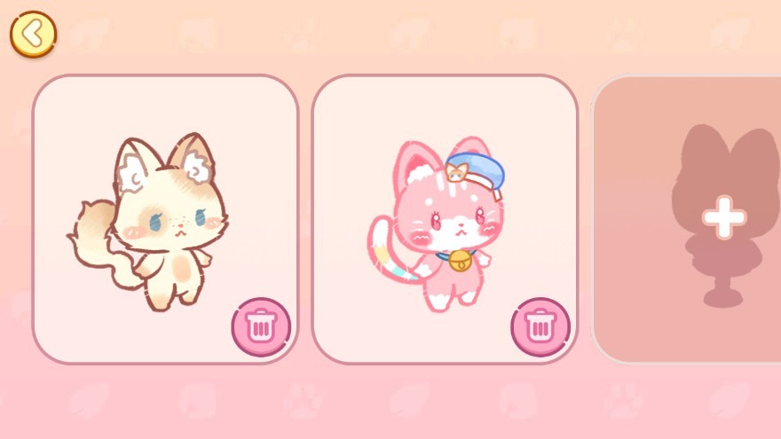 3、于角色创建界面,存在2只默认的小猫,点击它们便能够对形象进行编辑。倘若想要创建新角色,那就点击旁边的“+”号。