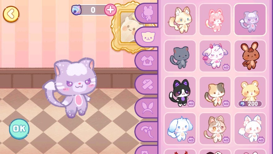4、随后进入角色创建页面,能够点击右侧的各类装扮选项,打造出独具特色形象的猫咪。