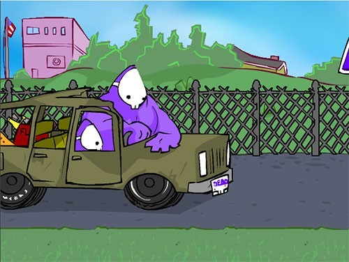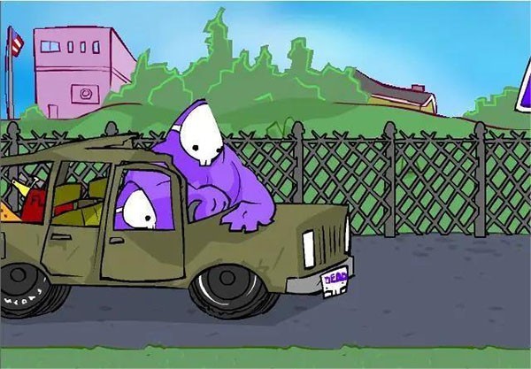 在此处,有五个小朋友正打算过马路(不过,他们永远都无法成功通过)。他们就那样一动不动地站着,如此一来反倒更容易被攻击。需要注意的是,从公路上疾驰而来的汽车攻击性颇强,自然也会对小朋友造成伤害。