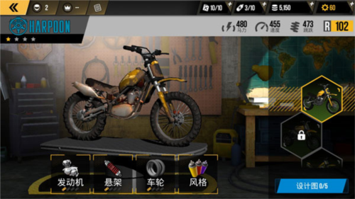 在游戏关卡中赢得奖励后,你能够在主界面选择对摩托动力进行改装,提升摩托车的平衡动力与输出威力,这对玩家在比赛中获胜起着至关重要的作用。