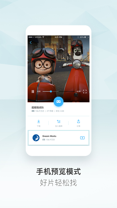优酷VR具备超强的本地播放能力,还支持线上内容缓存功能,能把海量内容缓存至本地,让你随时随地离线观看!