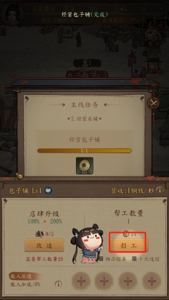 1. 刚进入新游戏时,完成经营类主线任务,以此赚取金币并提升等级。