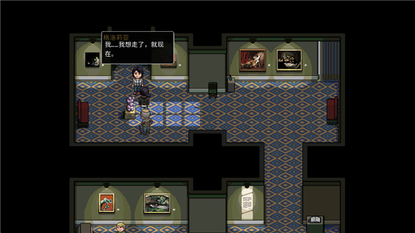 3、操控角色依照剧情指引,跟随剧情发展来到展览馆。沿着路线前行,直至来到馆内左边的通道,此时你看到了意外场景,当下便萌生了立刻离开此地的想法。