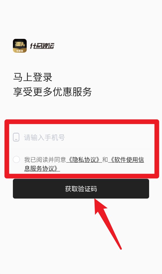 1. 于首页处,点击“请输入手机号”的输入框,填入手机号,勾选协议,随后点击“获取验证码”,以此完成快捷登录。