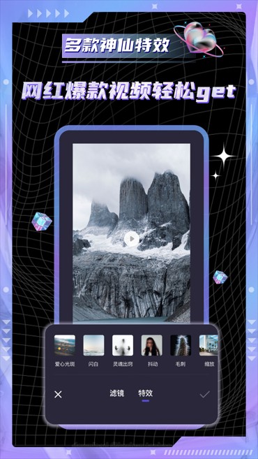 内含丰富素材,文字,涂鸦,滤镜等,一键轻松编辑视频,让您随时随地进行制作大片!