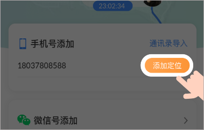 2、手机号添加定位关注,时刻守护家人定位安全。
