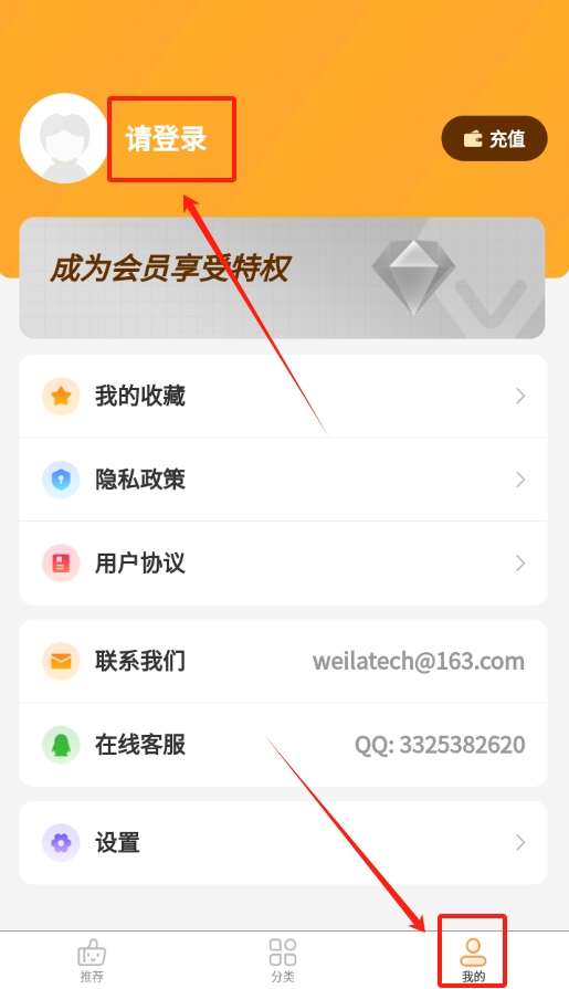 1. 开启朋友圈文案精品句子软件,在界面下方找到“我的”页面,点击进入后即可看见登录按钮。