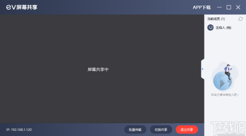 4、当您进入共享屏幕页面后,能够分享个人IP地址,并等待其他人加入。