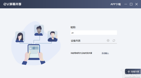 1. 双击软件,进入共享页面,在此页面您能够设置用户昵称,还能添加设备列表。