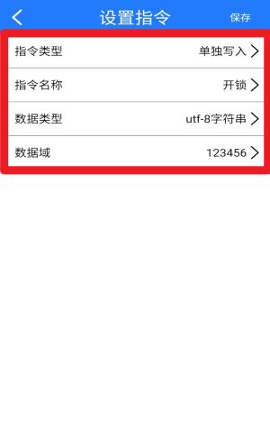 1. 在“设置指令”页面,依次填写指令类型、名称、数据类型以及数据域,随后点击右上角的“保存”按钮,便可完成指令配置。
