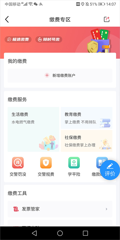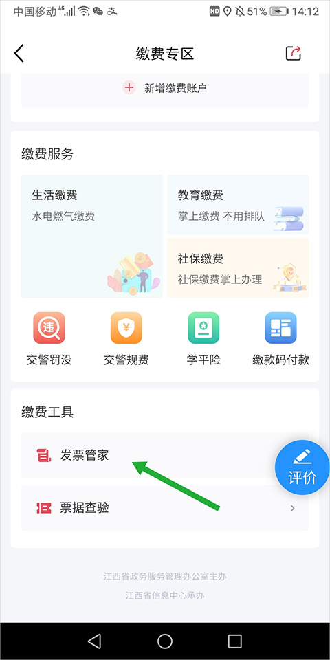 若用户有开具发票的需求,可进入缴费专区页面,点击【发票管家】,在弹出的支付宝发票管家页面里,选择缴费账单来开具发票。