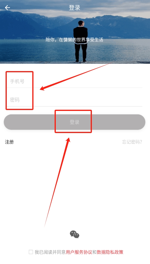 2、于登录页面,在相应位置分别填入注册时所使用的手机号以及已设置好的密码,以此完成登录操作。