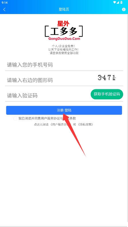 1. 在登录界面输入手机号码,完成图形与短信的双重验证后,点击“注册/登录”按钮,即可进入系统。
