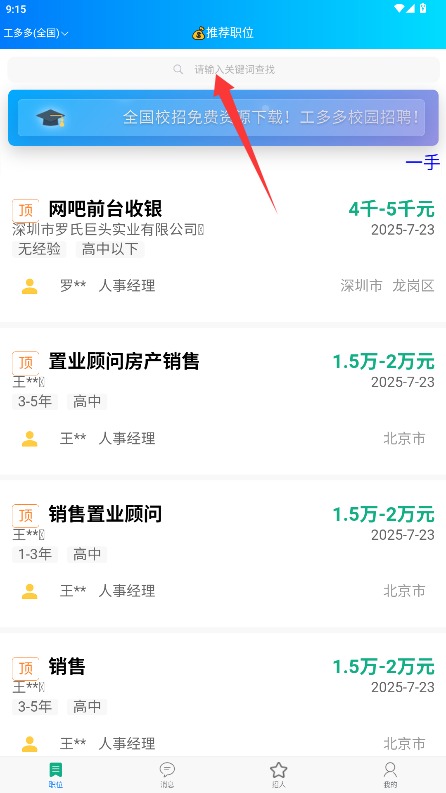 3、于职位推荐页面,既能浏览系统匹配的工作岗位,也能够借助搜索栏查找目标职位。