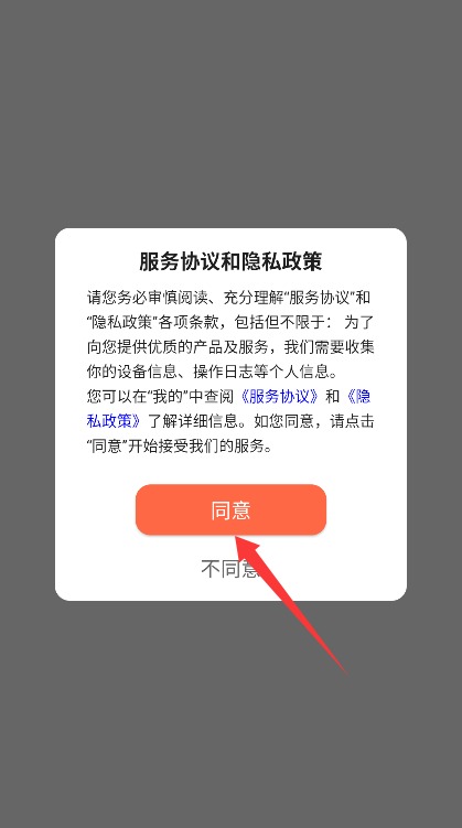 1. 首次使用时,需仔细通读平台服务条款及隐私政策,确认无误后,点击同意按钮方可进入应用。
