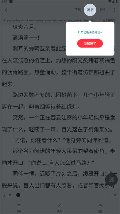 5、进入章节页面后即可开始阅读,顶部设有听书按钮,开启后由AI语音流畅朗读,解放双眼,享受声音演绎的故事世界。