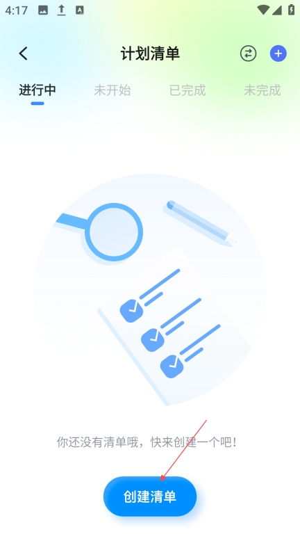2、进入“训练计划”界面,点击“开始训练”图标,创建清单。