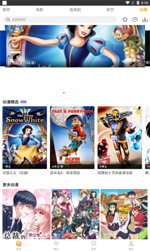 用户下载安装后,打开软件即可浏览各类影视内容。首页展示了热门推荐,用户也可以通过顶部的分类标签快速切换至电影、电视剧、综艺或动漫板块。