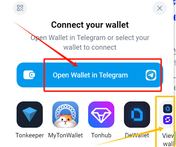 4.可以选择链接,飞机自带的Ton空间,也可以选择跳转到自己常用的Web3 wallet