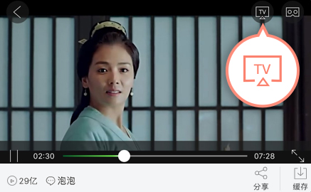 3、在最开始播放的时候,我们可以看见右上角TV字样。点击一下这个TV就可以视频投屏了。