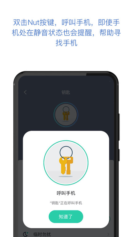 3. 自在找app还具备专属的网络寻物功能。当手机远离身边时,借助nut硬件产品,自在找app会及时提醒您,有效防止手机丢失。