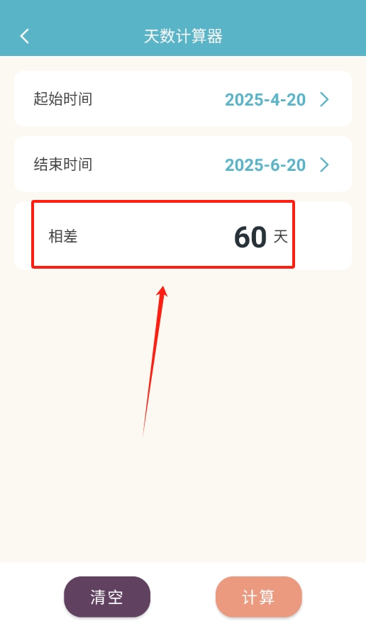 3、点击“计算”按钮后,稍等片刻,页面就会快速显示出这两个时间之间相差的天数,结果清晰明了。