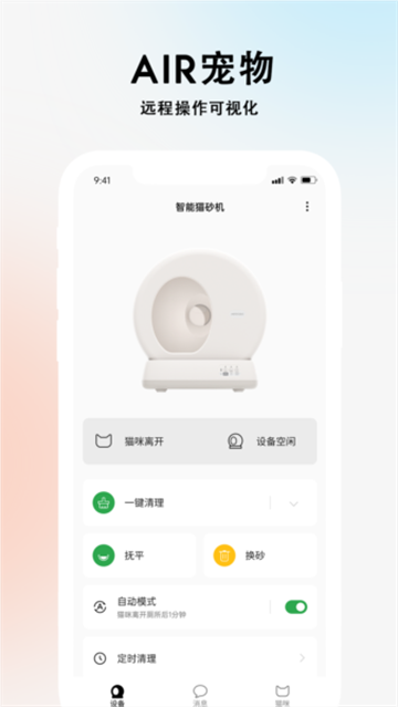 AIR宠物这款APP隶属于AIRROBO,需与AIRROBO智能猫砂机协同运用,具备远程操作可视化、智能多猫识别、健康数据管理、自定义智能设置等诸多功能。赶紧下载来体验一番吧!