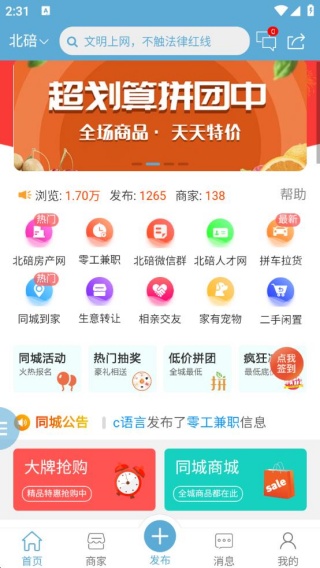 1、涵盖房屋租售、家政服务、二手交易、本地资讯等各类生活场景,一站式满足日常所需,无需在多个平台间来回切换。