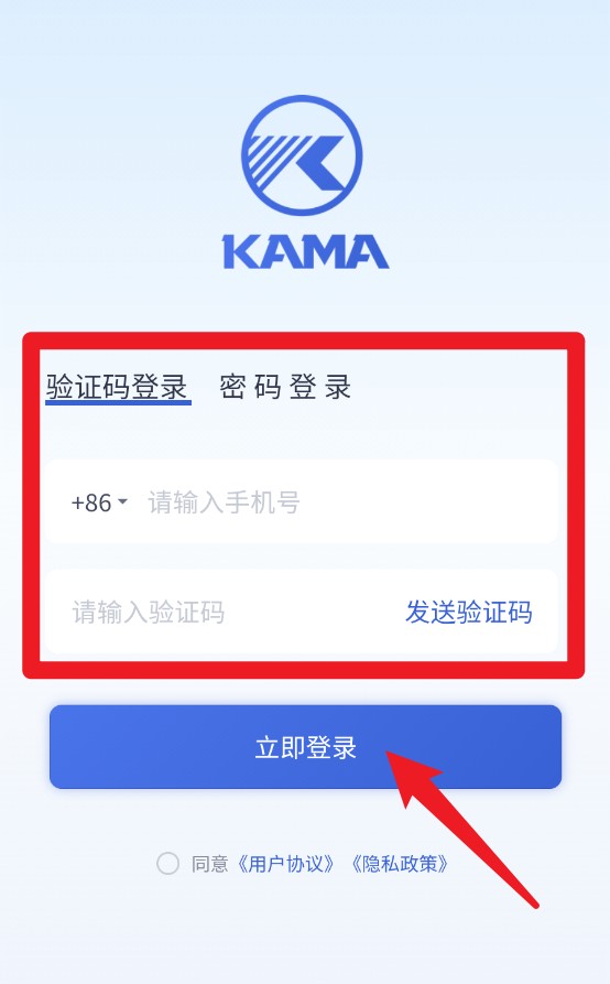 1. 初次打开应用时,可在验证码登录与密码登录两种方式中任选其一。输入手机号码后,点击“立即登录”即可进入系统。