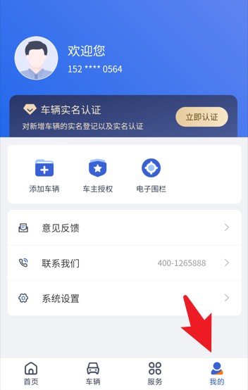 5、当您进入“我的”界面,就能开展车主认证、添加车辆、系统设置以及联系客服等相关操作。