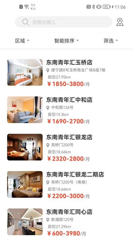 东南青年汇,专为租房青年量身定制的暖心服务平台!线上看房皆为真实房源,面积与价格清晰呈现,线上轻松预约,店长热忱接待,省心至极;水电使用明细随时可查,一键报修无需求助他人;支持微信、支付宝在线缴费,入住后还能远程开门,便捷到家!开启更智能的租房生活,就从东南青年汇起步~