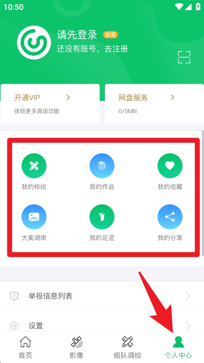 4. 点击进入个人中心,在这里你能够查看过往的标绘记录以及创作的作品。