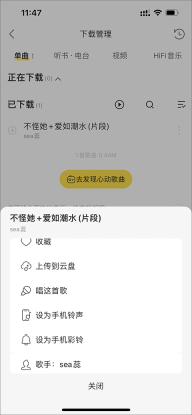 答疑:若想找到心仪歌曲,点击“ ”按钮,选择下载至本地。请务必确保您设备上有足够的存储空间。