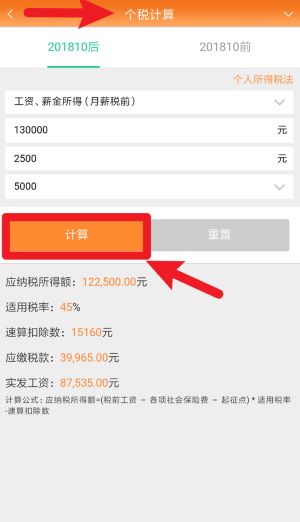 3、于个税计算模块内输入工资及扣除项,随后点击“计算”按钮,就能迅速查看税后收入明细。