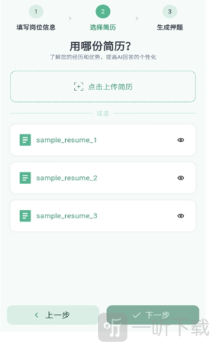 5. 系统会自动生成岗位信息,随后上传简历,完成后点击下一步。