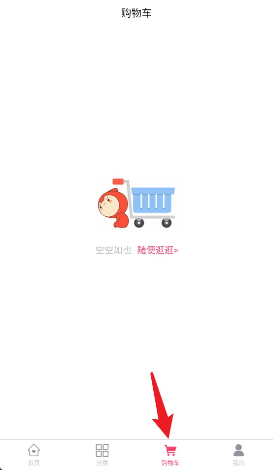 4、在购物车页面,用户能够查看已添加的商品。若当前购物车处于空状态,则会提示用户可随时添加心仪的商品。