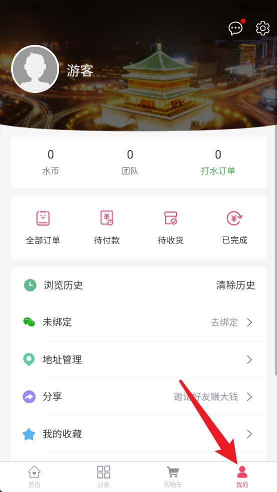 5、“我的”页面设有订单状态、浏览历史、地址管理等功能模块,方便对个人信息进行统一管理。