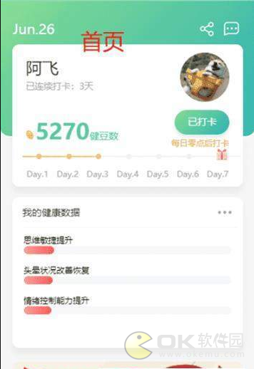 首页,个人健康数据一目了然