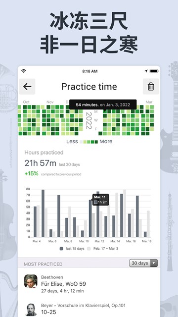 5、录音功能:该软件拥有录音功能,能够记录乐器演奏过程,便于用户回听与分析。